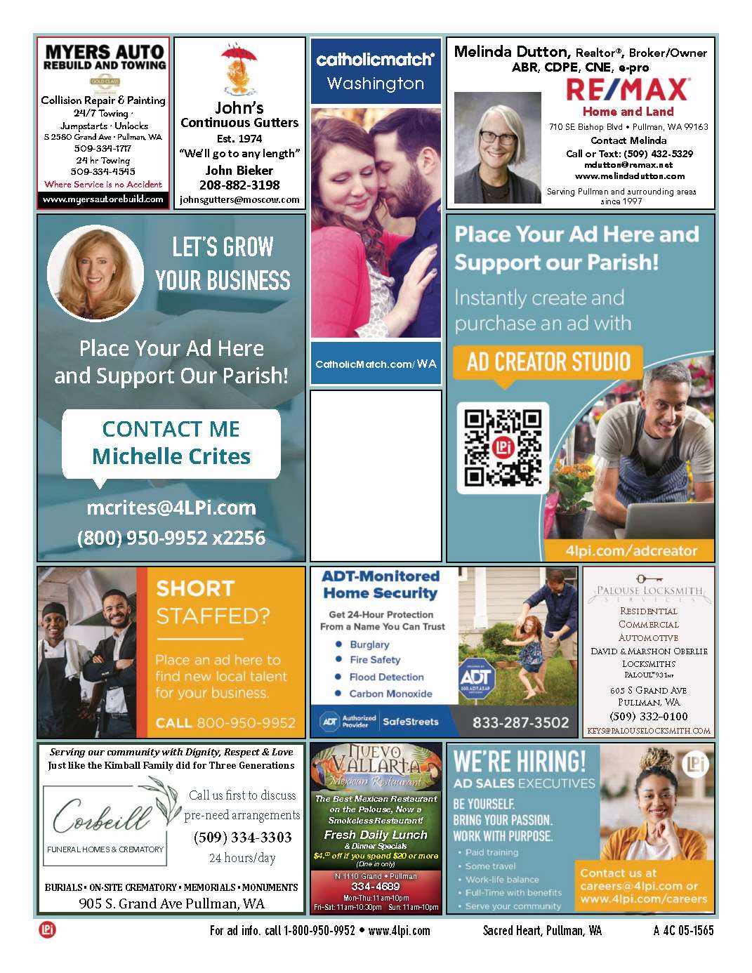 Your prayers are asked for: Karen Curry, Mary Johnson’s sister Susan, Colin McGuire, Julianne Hwang, Goretti Manzo, Karen Morrison, Crystal Lee, Diane Moser’s son Jeff , Meg Gollnick, Dennis Duran, Cheryle Carlson, Dominic Pedrotty, Don Snekvik, Ray & Lina Quock, Eleanor Scott, Alexa Owens, Fr. Tom Caswell, Kent Blevins, Carol Jorstad, Lorraine Farrand, Diane Moser, Karen Kinzer, Shay Connell, Alyssamarie Link (daughter of Al & Lorraine Farrand), Stan Bauer, Fr. Jim Lee, Melchor Mendez, Saturnina Quintana, Cathy Stephens, Dennis VanAllen, Anthony Newman, Kristel Tingzon, Laura Huberty Scott, Albert Eng, and Muriel Parra.
